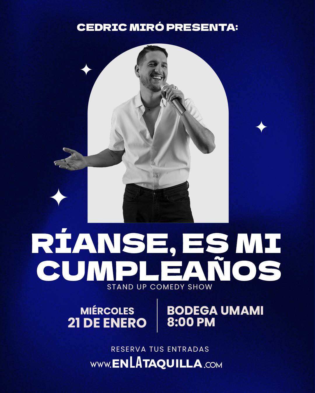Ven a celebrar el Cumpleaños del Comediante Cedric Miró con su último show de Stand Up. Contará con la apertura de Comediantes invitados y after party.